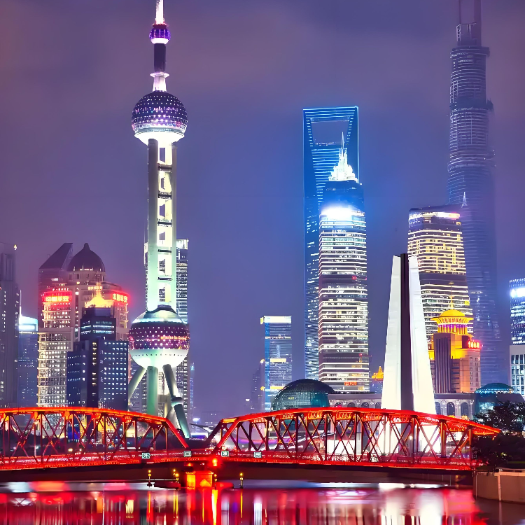 Night view of the Huangpu River on the Bund in Shanghai